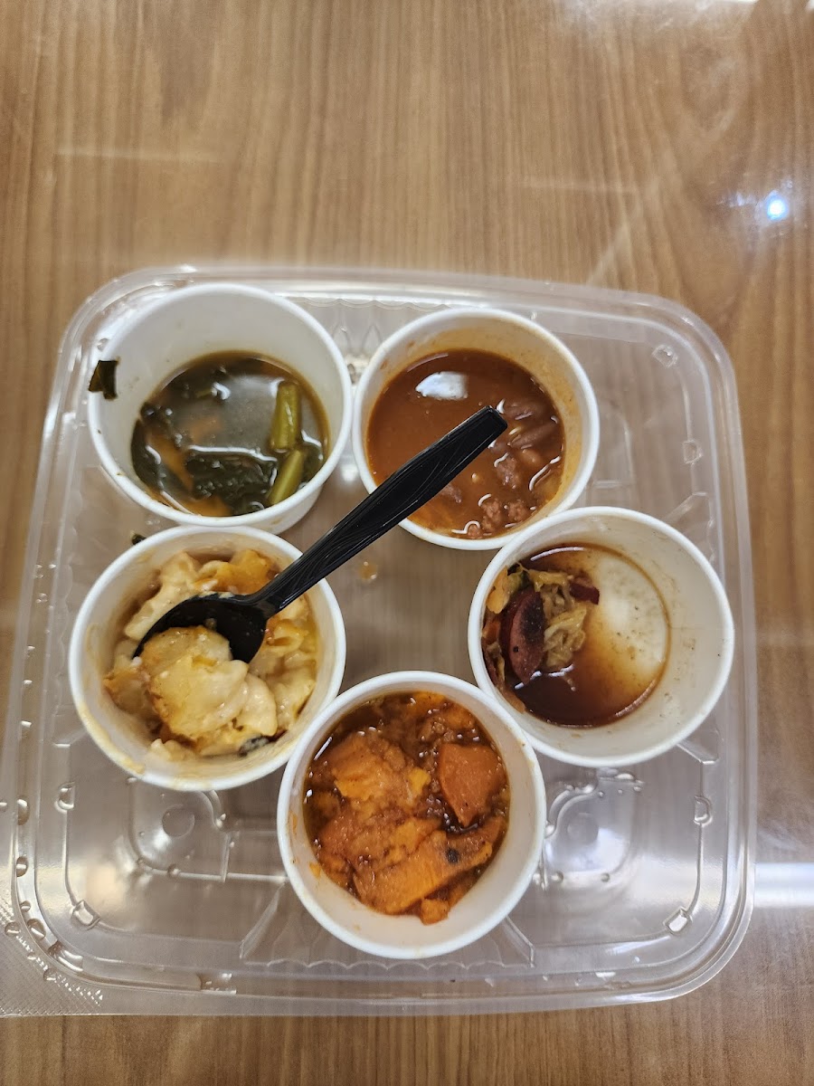 I had the gumbo, gravy rice, mac & cheese, and peach cobbler. The large gumbo was hefty and full of shrimp, sausage, veggies, and fresh, meaty crab legs . It’s a runnier gumbo than what you’d get down south but it’s chock full of spice and flavor. The mac and cheese was homemade, just like you’d get at mom’s house and the gravy rice wasn’t too bad. The peach cobbler was a showstopper! The crust was buttery and crumbly and the peaches were tart, juicy, with a perfect balance of sweetness. Definitely a great, local, holistic place to get some good local soul food.