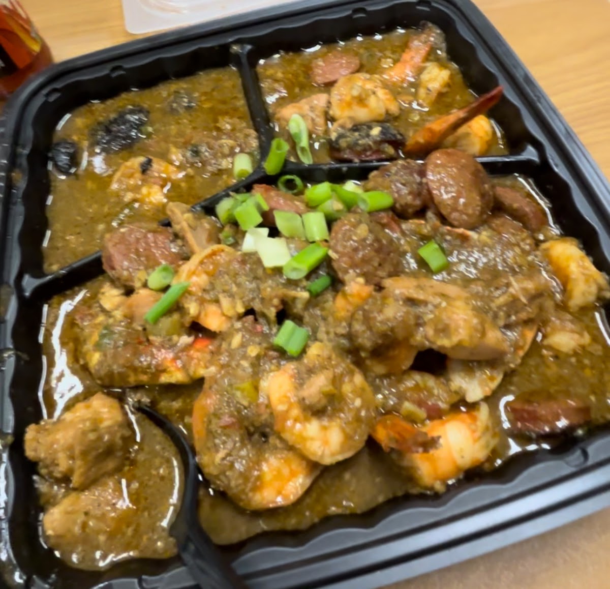 The food was amazing and affordable, I fed a friend and I with the medium sized crab gumbo (only $20) it was very savory and she did not skimp on the portions! The chicken was tender, the sausage was crisp and delicious, the roux was fatty and flavorful, and the crab is what you expect, delicious. We got to try the collard greens as well. A lot of places either have bitter or flavorless collard greens but these were savory and flavorful and the turkey in it was tender and salty. The woman in charge was super sweet the whole time and for a business only about a month old, the atmosphere felt like you were at a friends restaurant, not just some hole in the wall on florin. I HIGHLY recommend going here and getting the jambalaya or gumbo + the collard greens. Try out the food before I come back and eat it all.